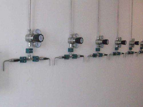 在某些情況下,當地消防規(guī)范建議甚至要求將主要的氣體源如鋼瓶、杜瓦瓶和液體儲槽放置在工作區(qū)外的指定區(qū)域,然后將氣體通過管道系統(tǒng)輸送至廠房內,并可通過安裝在工作臺上的使用點二級減壓器方便地調節(jié)壓力和流量。